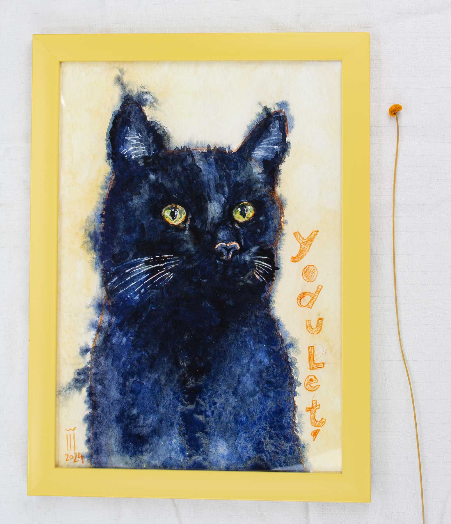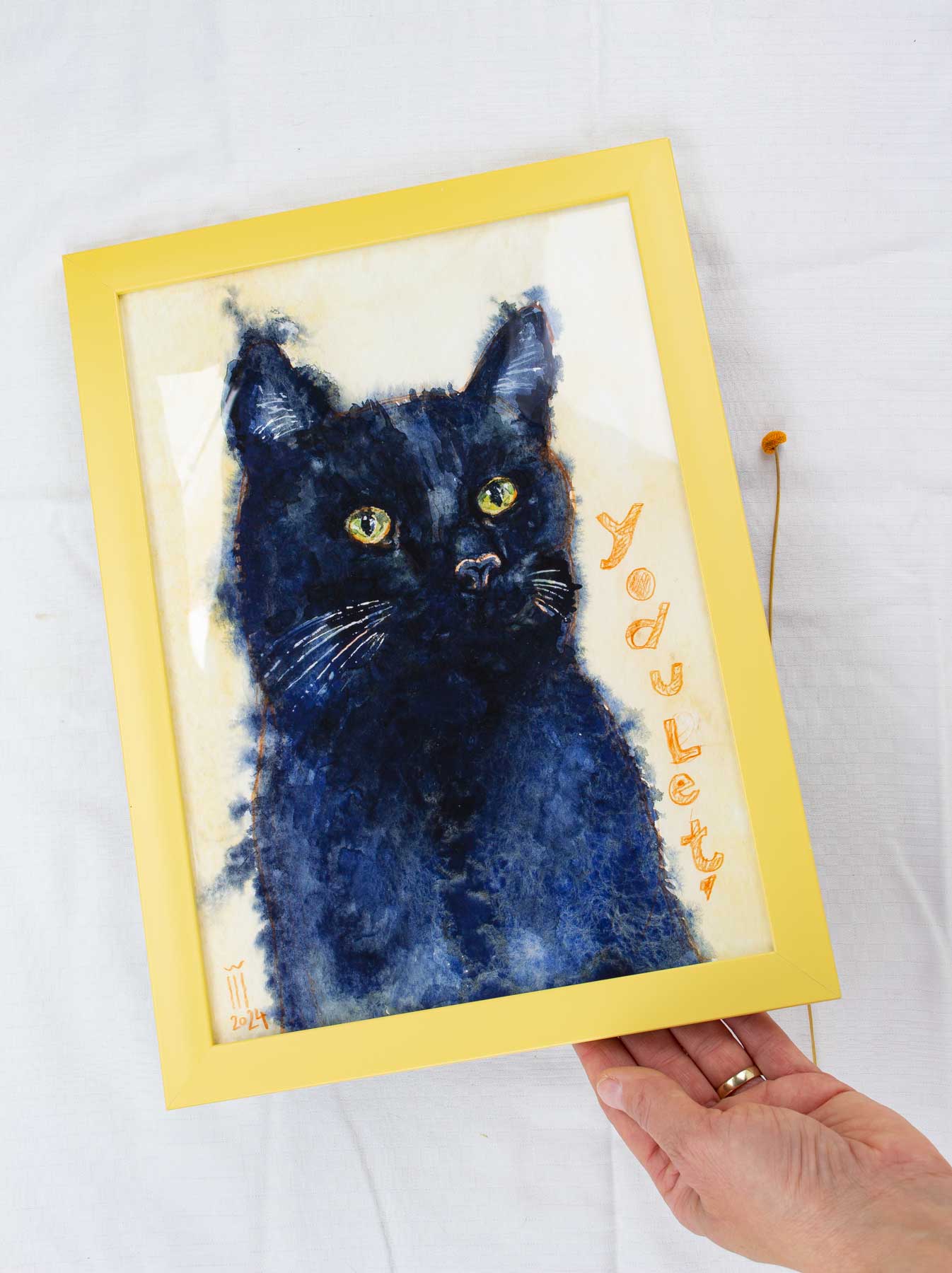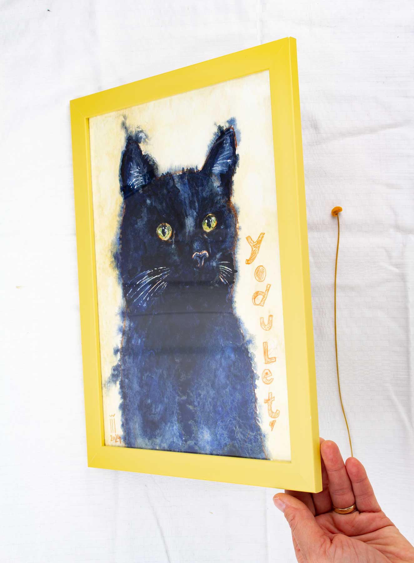 Tablou cu pisică neagră Yoda Motanul, zis Yoduleț – este un print de artă realizat în tehnica giclee pe hârtie fotografică de calitate Fine Art Premium Matte 240gr./mp. Are aspect catifelat, mat, asemenea originalului și se livrează semnat în original. Dimensiuni: 24/33 cm