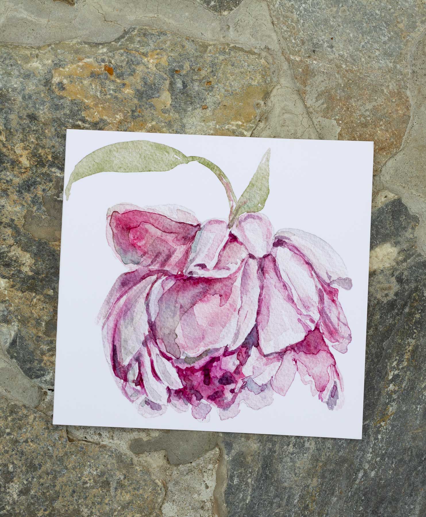 Felicitare de calitate, reprezentând un bujor roz, realizată după o lucrare de artă proprie / Pink Peonia high quality postcard, made after a selfmade artwork