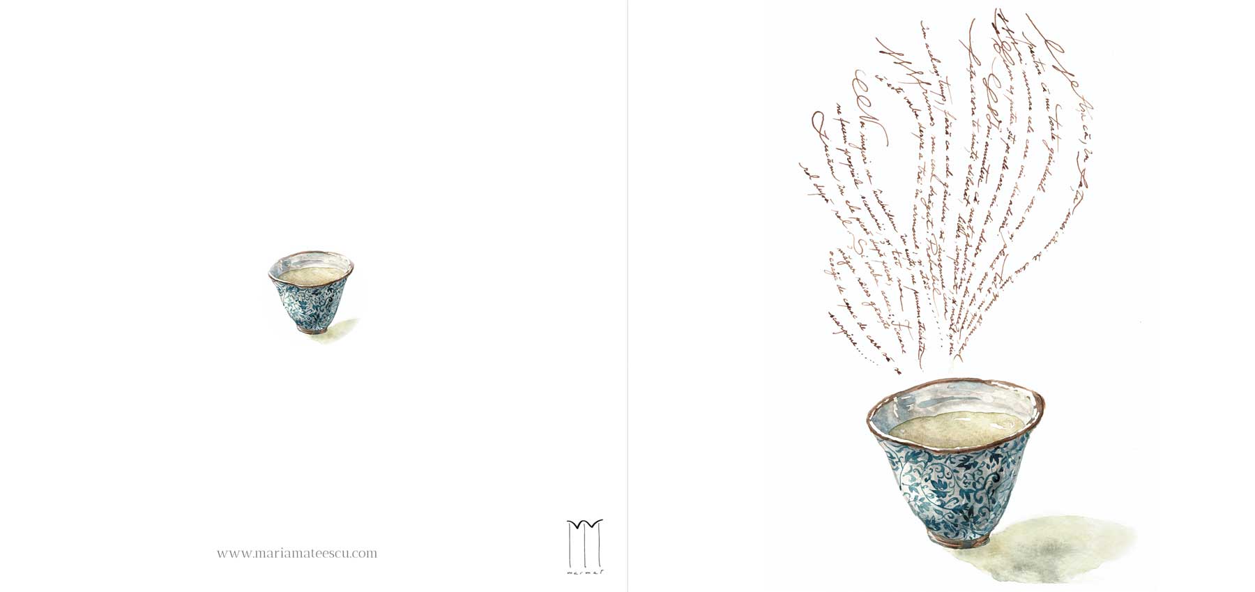 Felicitare de calitate, reprezentând o ilustrație proprie din suita „Gânduri din cana de ceai”/ Postcard made after an illustration from my project „Thoughts In A Teacup”