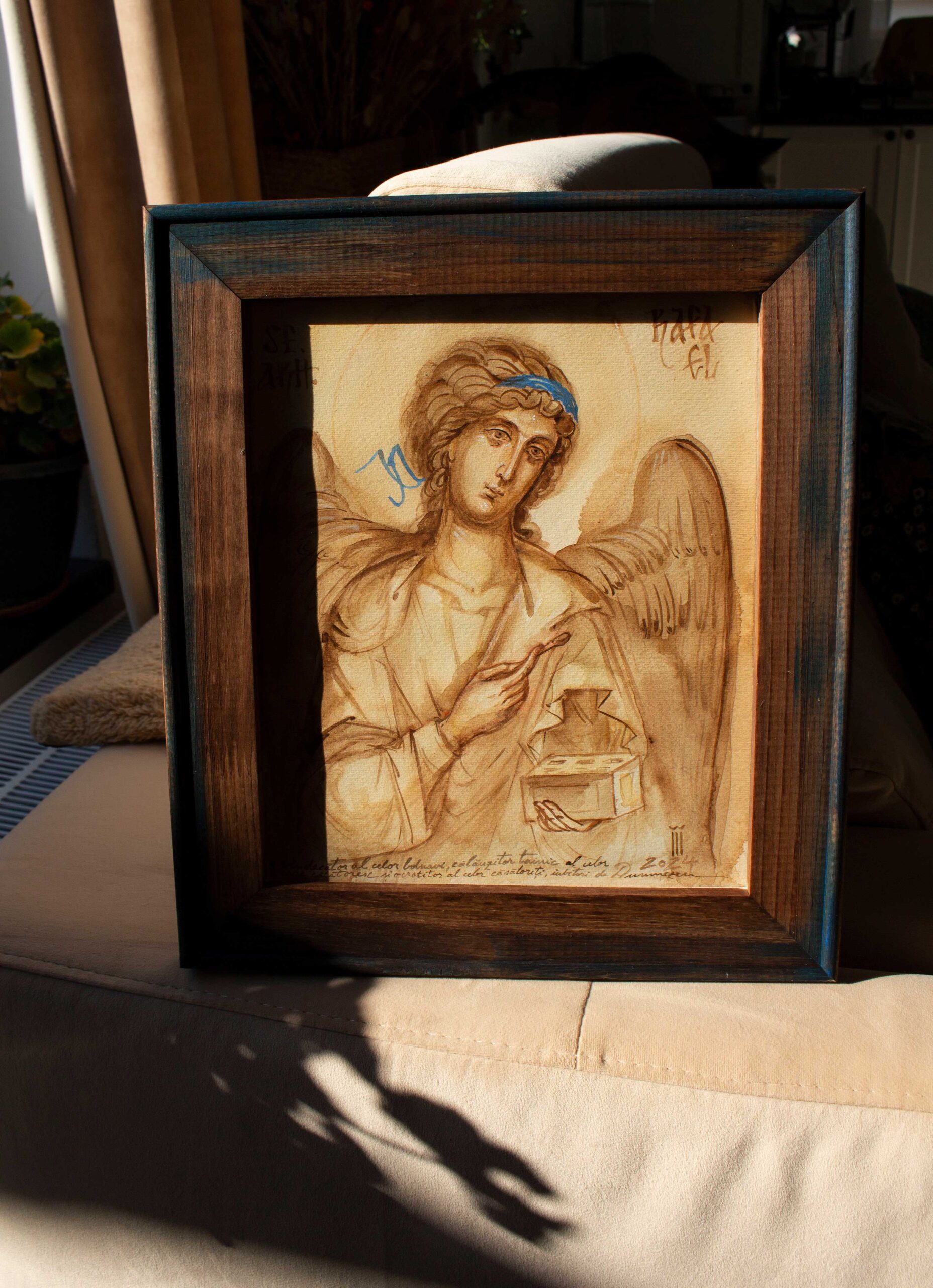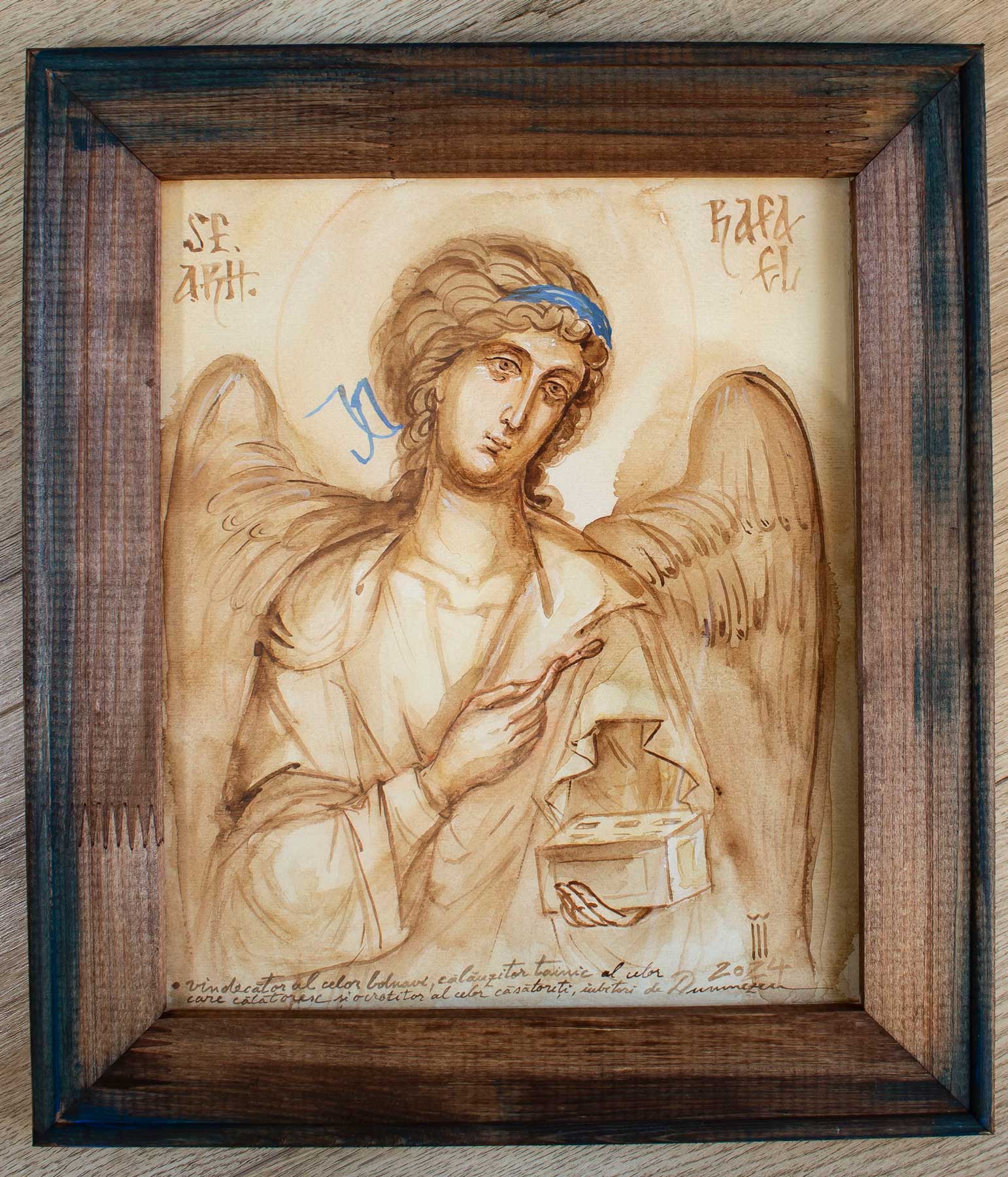 Icoană pictată – Arhanghelul Rafael (semnificația numelui: Dumnezeu vindecă). Este cinstit ca vindecător al celor bolnavi, călăuzitor tainic al celor ce călătoresc și ocrotitor al celor căsătoriți, care Îl iubesc și Îl cinstesc pe Dumnezeu. De aceea, o icoană cu Sfântul arhanghel Rafael poate fi un cadou potrivit celor care pornesc împreună pe drumul căsătoriei.