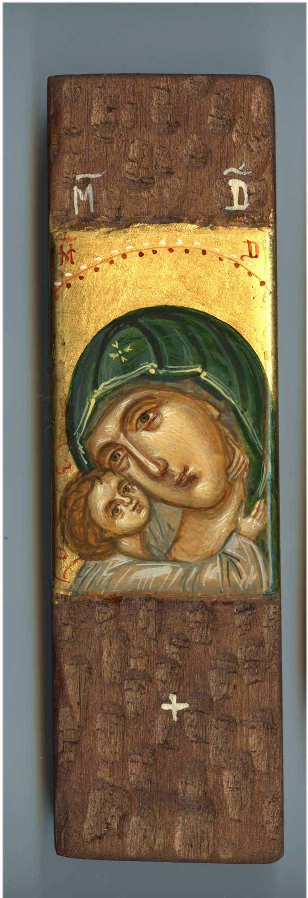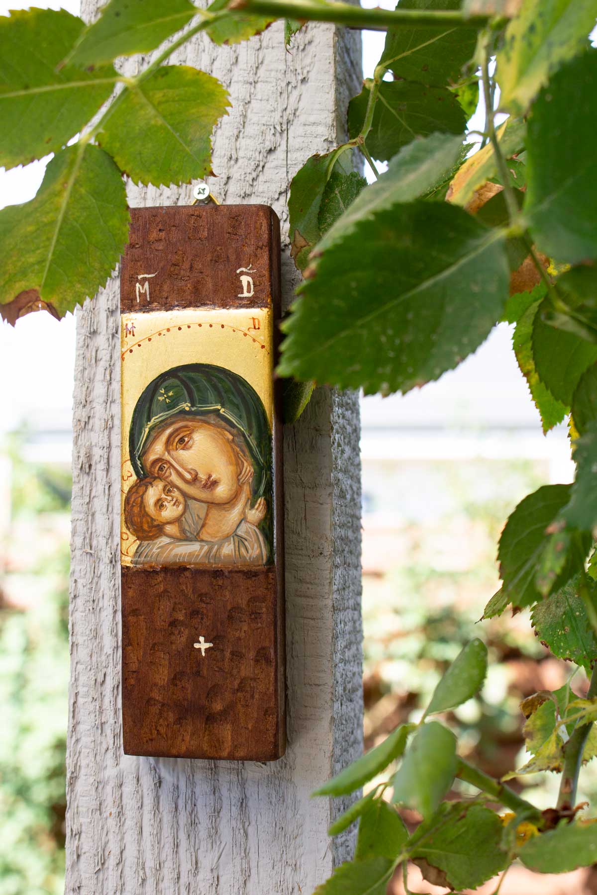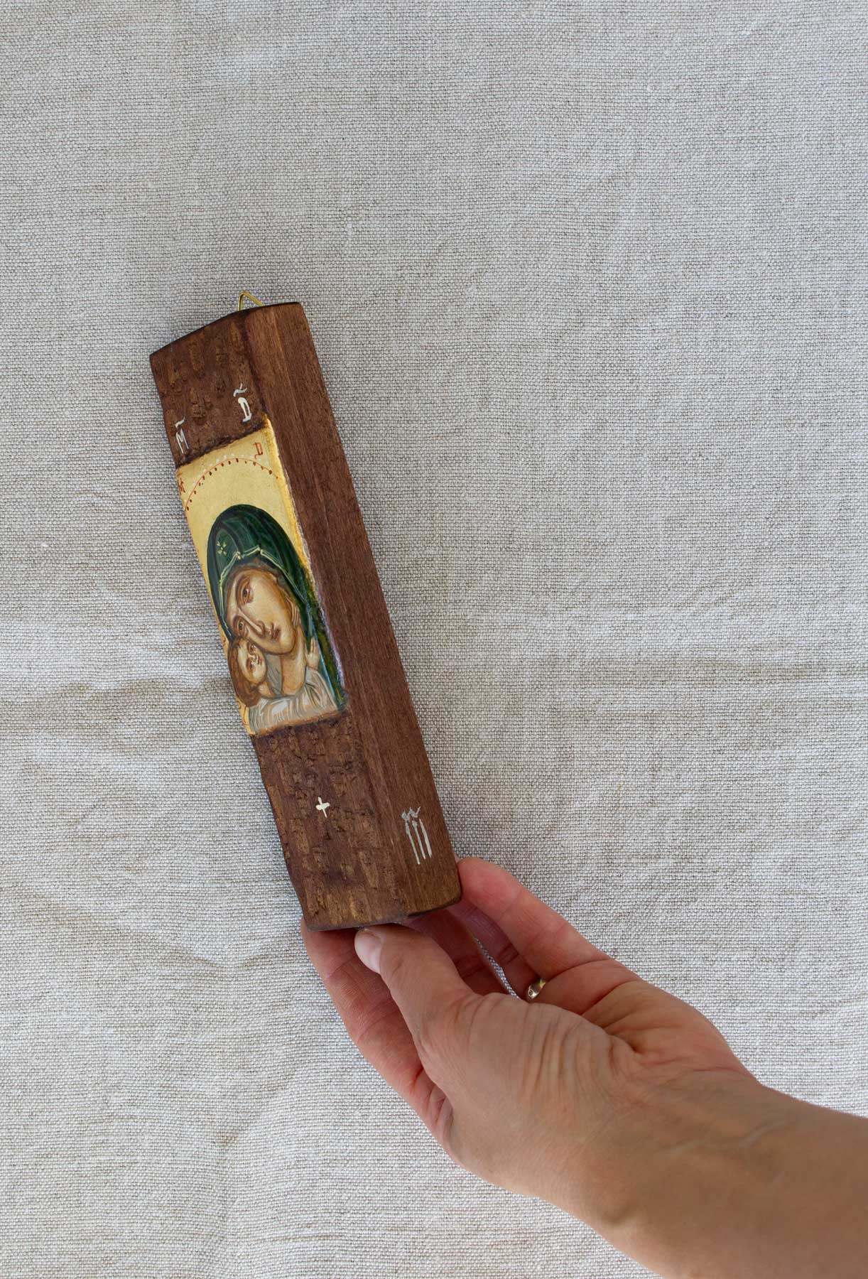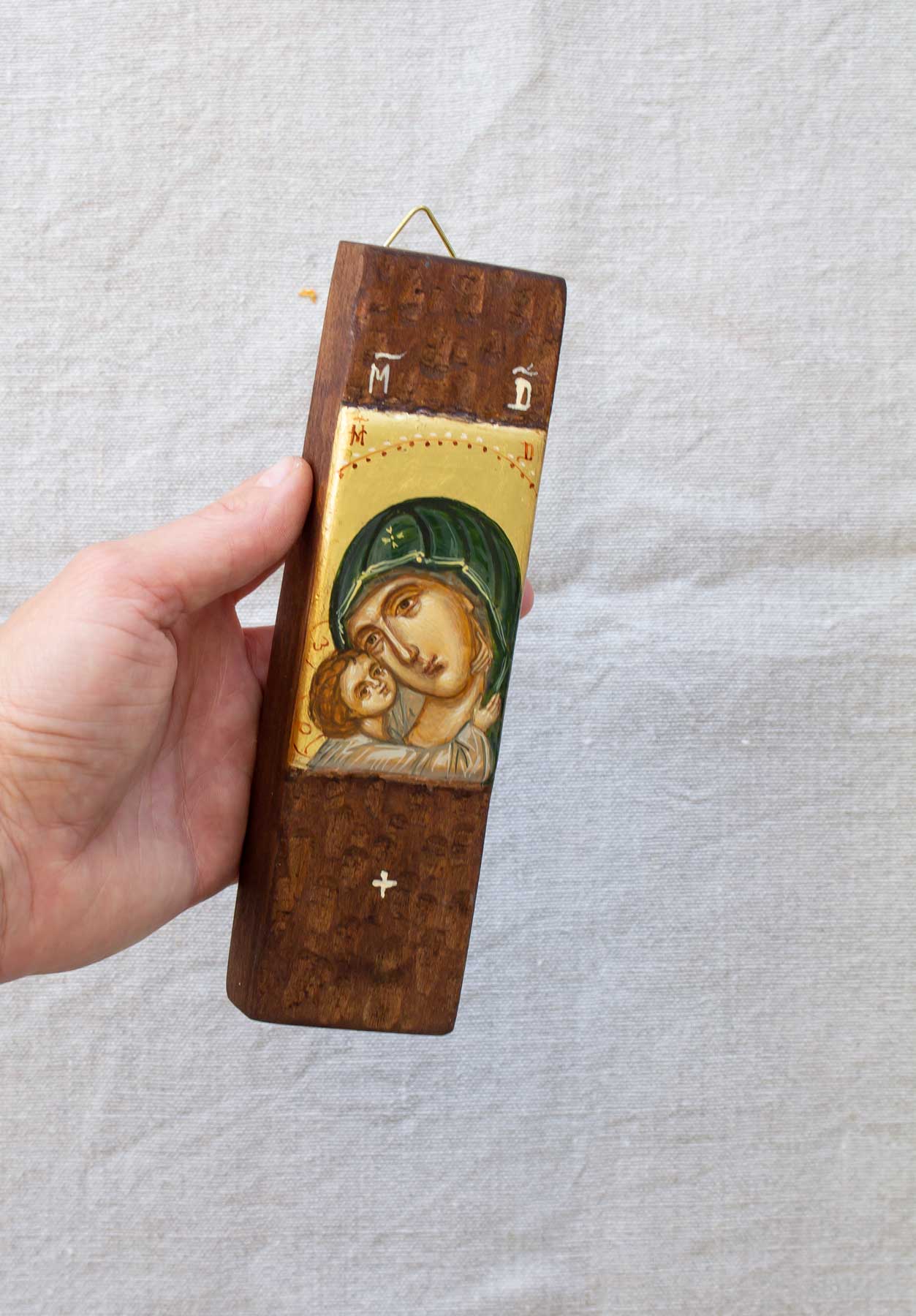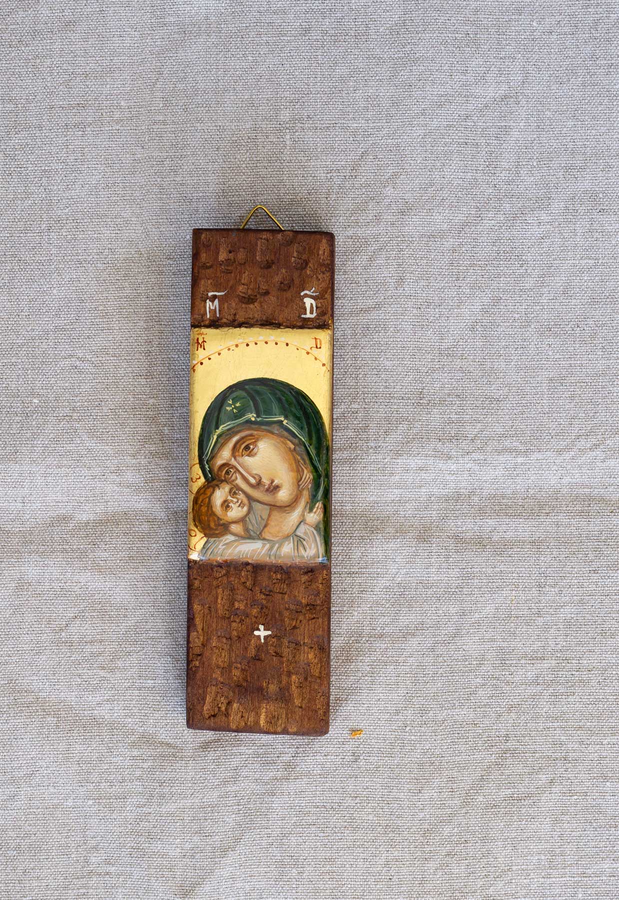 Maica Domnului cu Pruncul – icoană pictată pe lemn de păr sculptat
