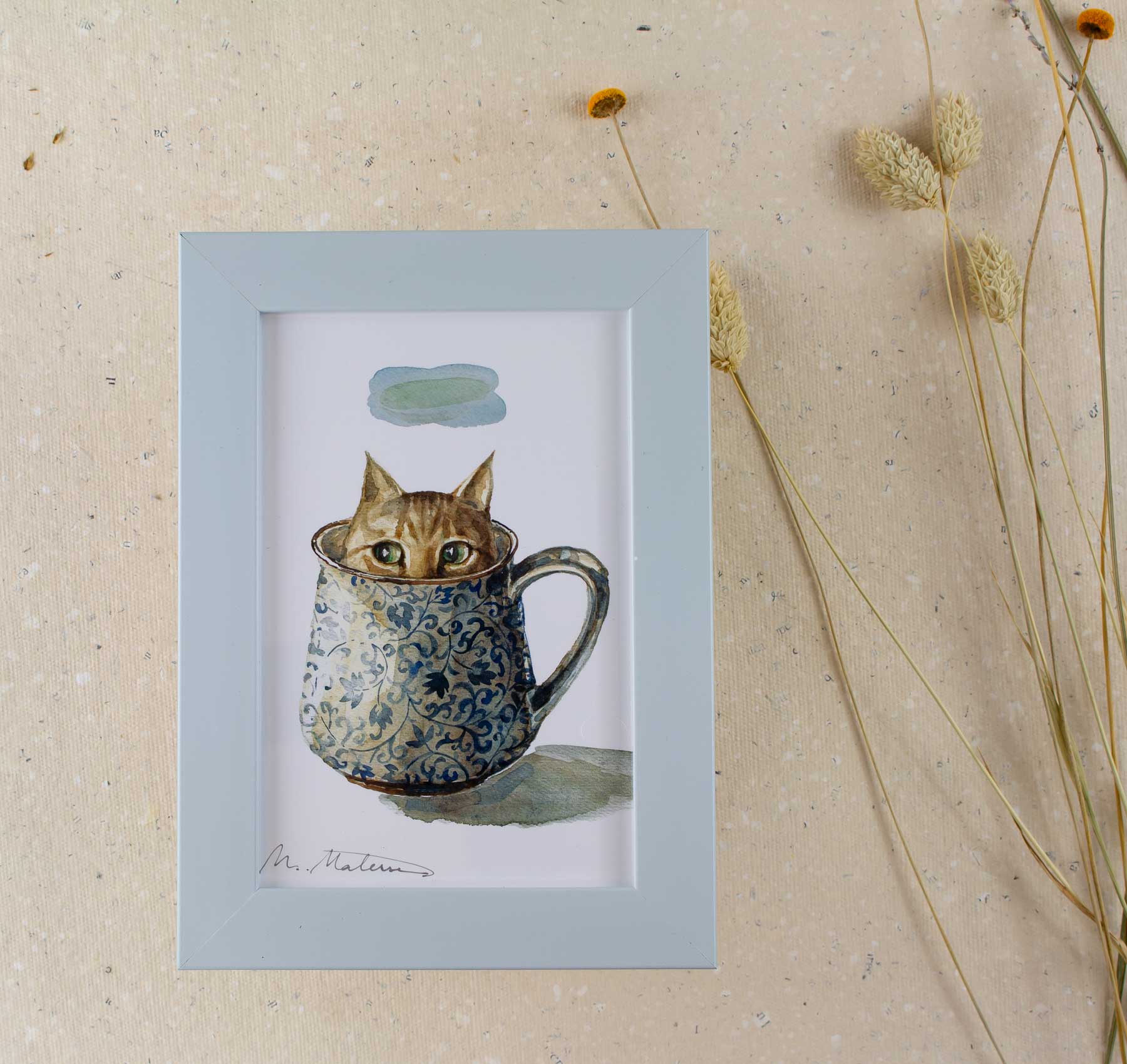Tablou cu pisică în cană: „Pisa”- Print de artă 13/18 cm