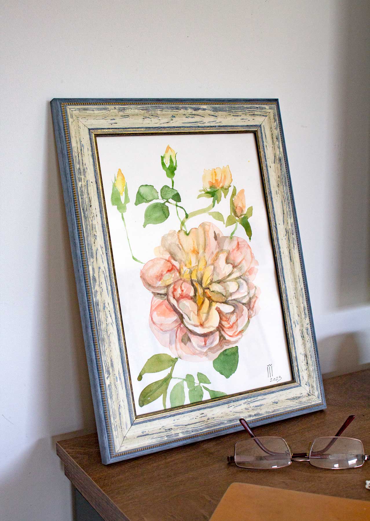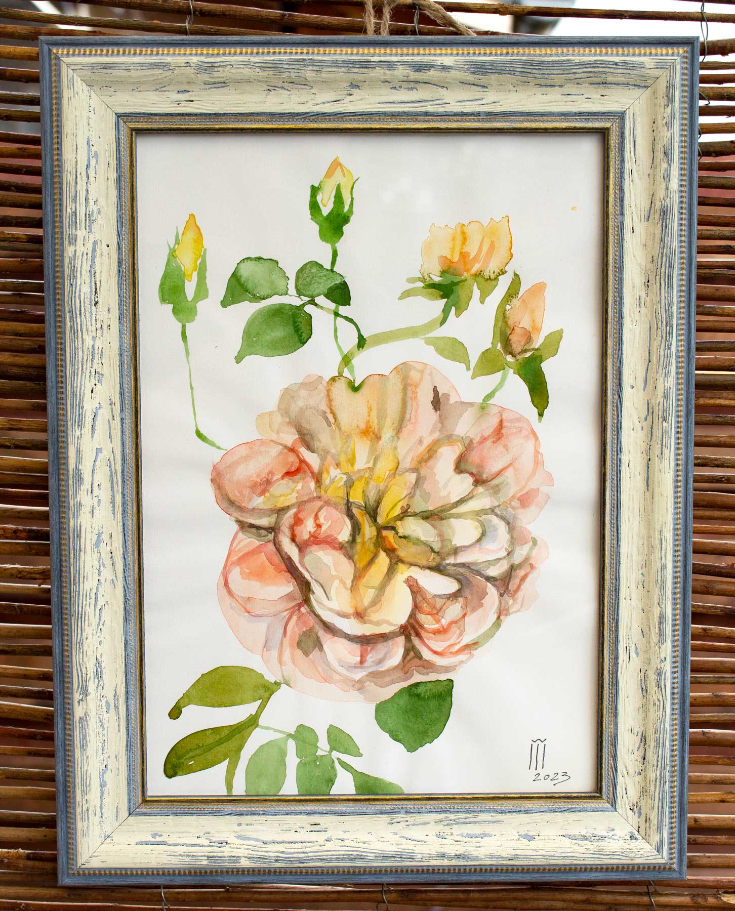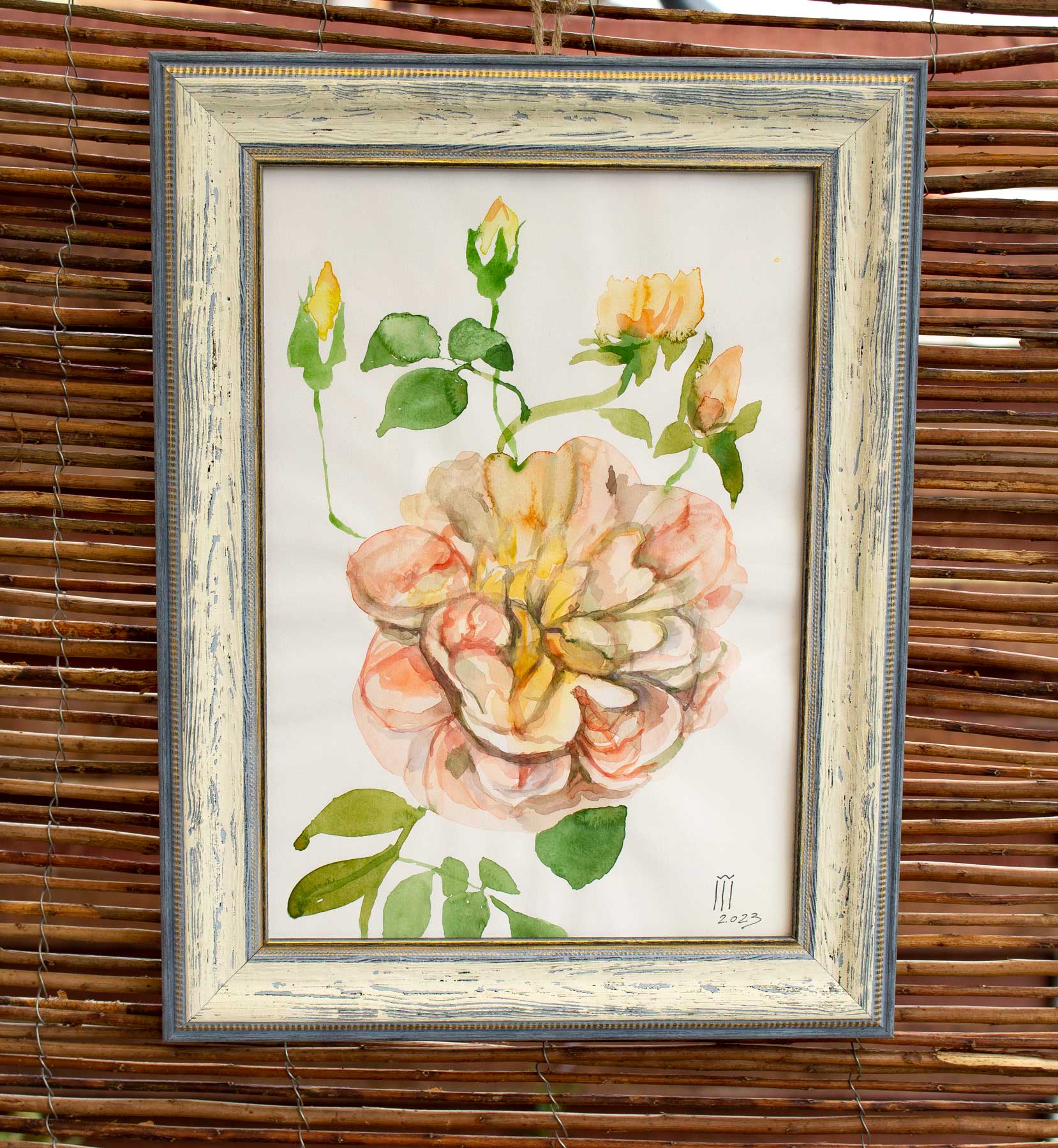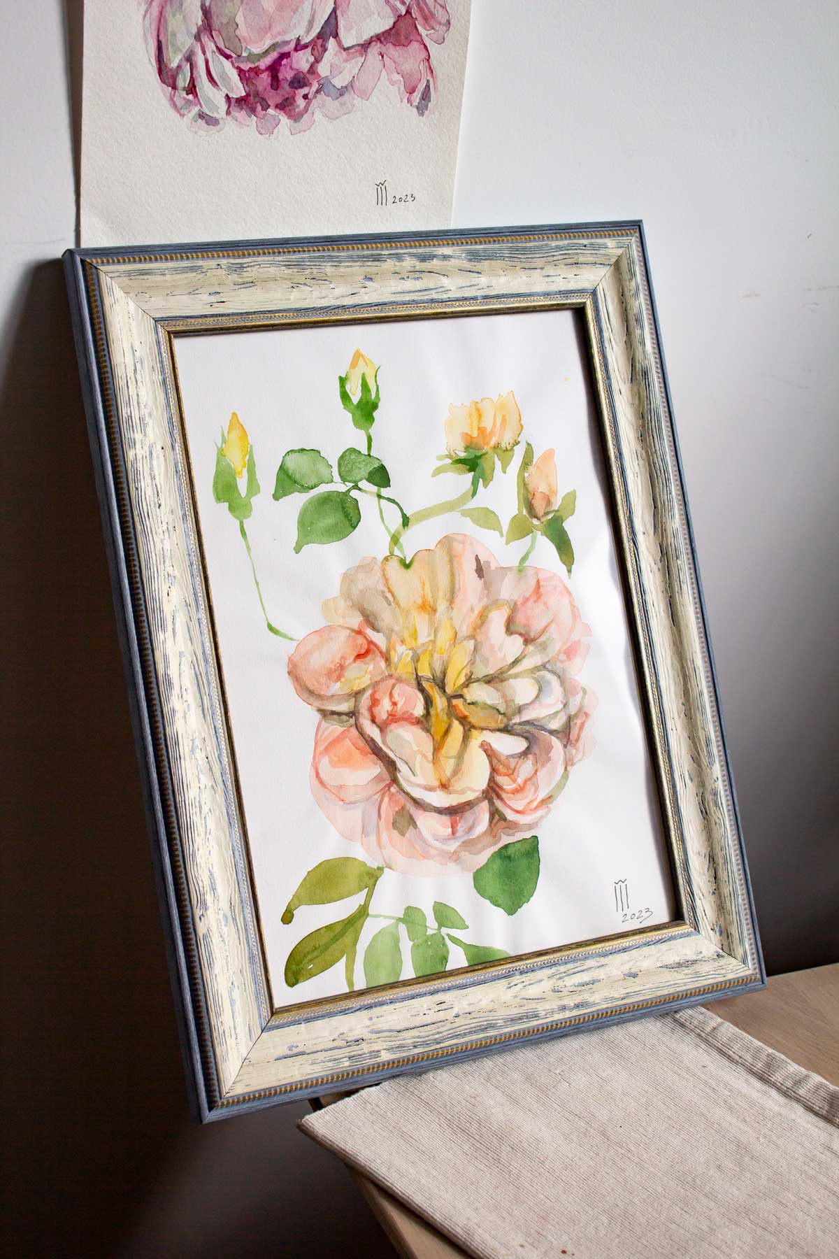 Original artwork, painted in watercolor on 250 gr. paper. The work is unique and it represents the portrait of my climbing rose named Papi. It is painted on site, in the garden, not made from photo. It is selling with frame, as it shows in pictures.