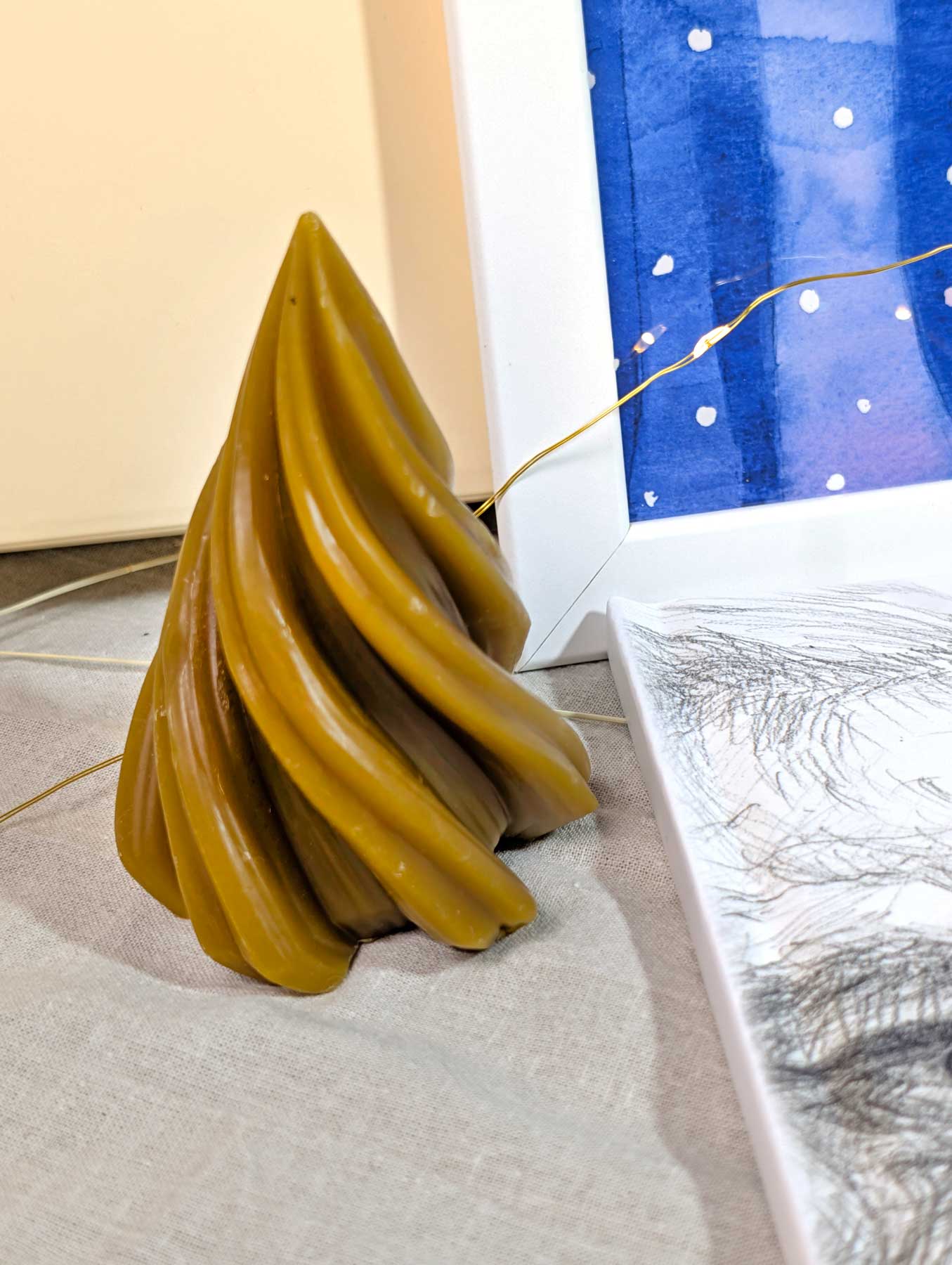 -o lumânare din ceară curată de albine, sub formă de brăduț.