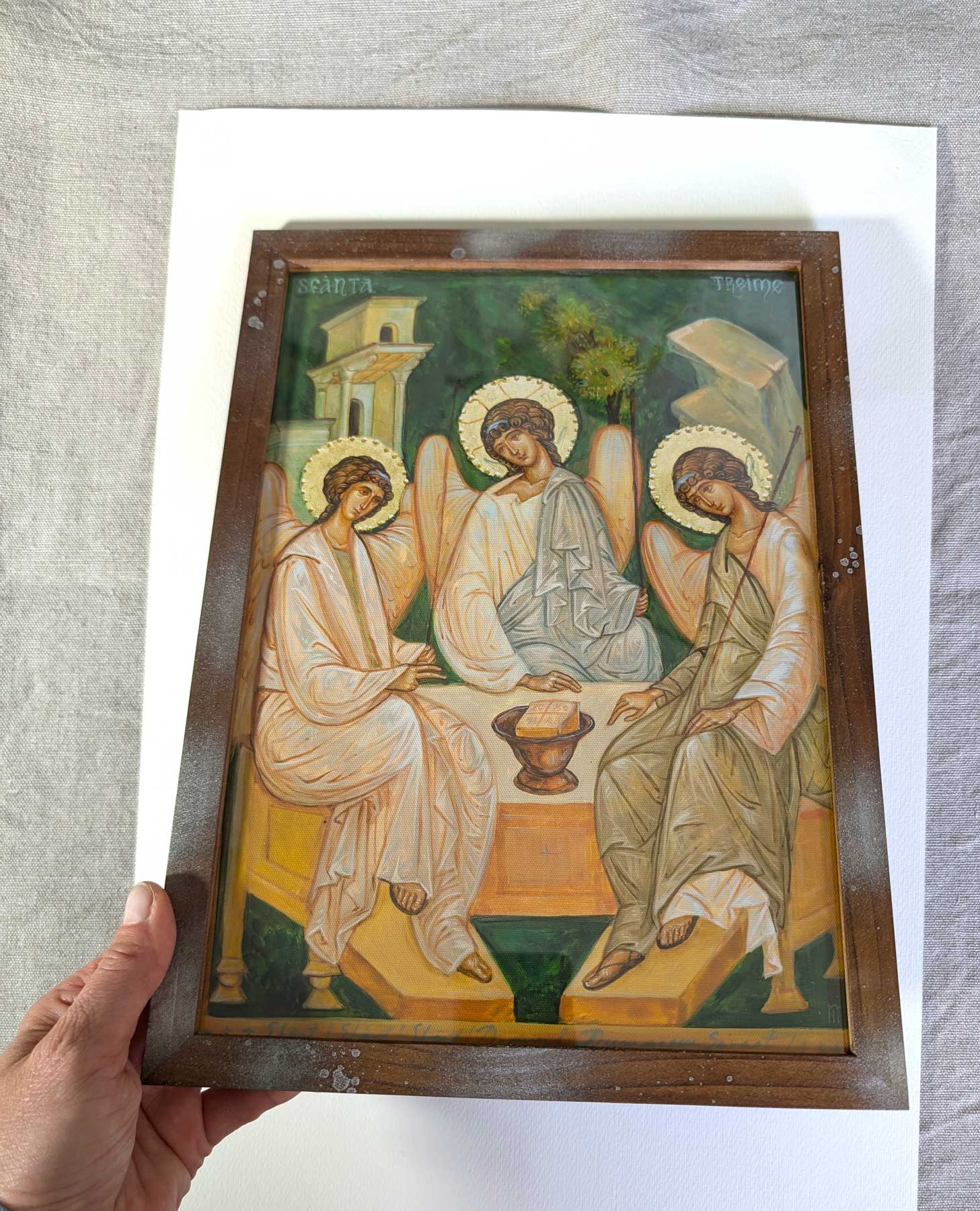 Icoana poate fi văzută fizic în București, în cadrul Atelierelor Verde Pătrat, str. Căuzași, nr. 36 (aproape de Piața Unirii). Pentru programare, vă rog să lăsați un e-mail la mariamateescu66@gmail.com